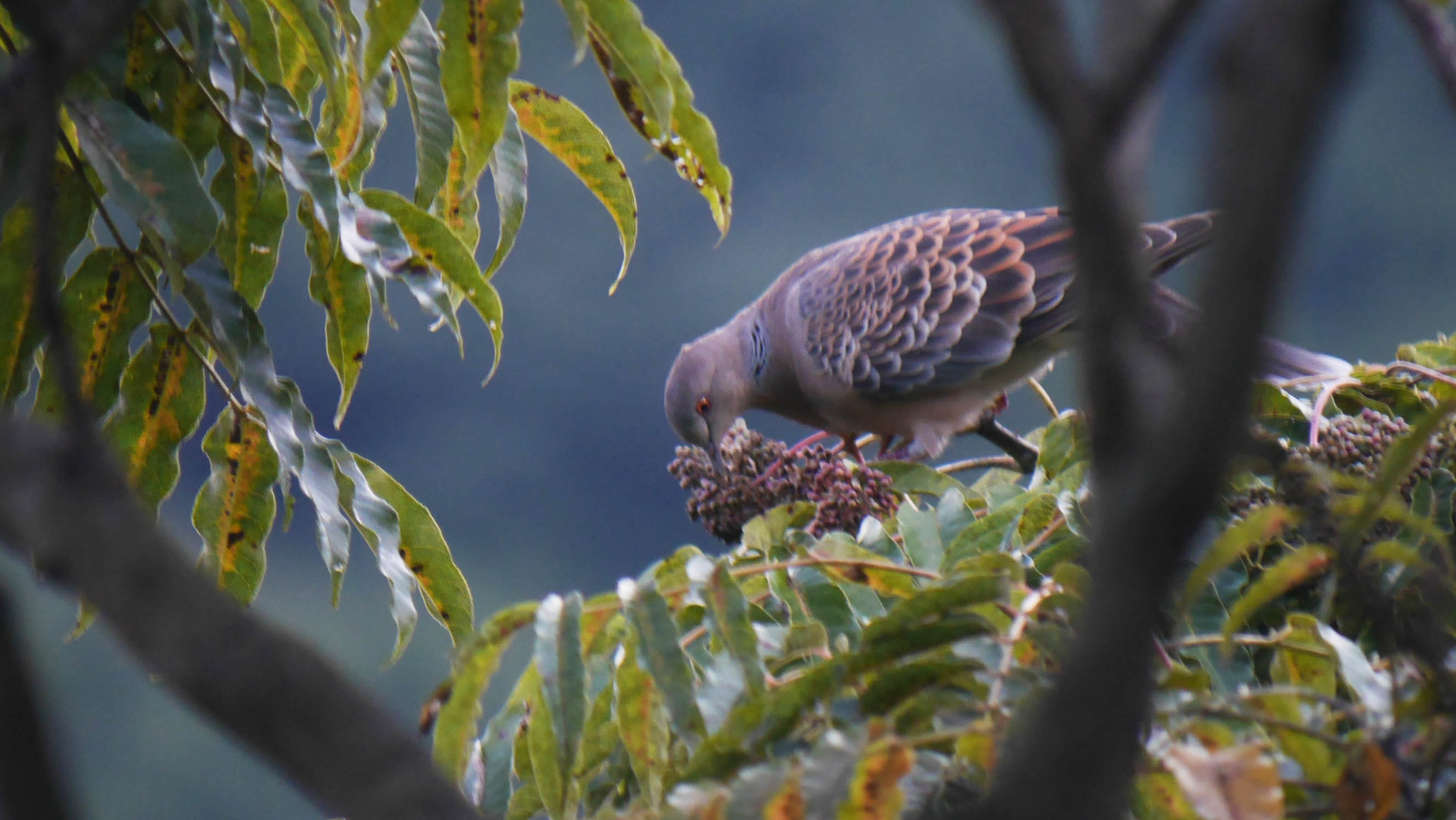 数人が撮影に成功。カラスザンショウの実を啄んでいるので明日も居るかも?