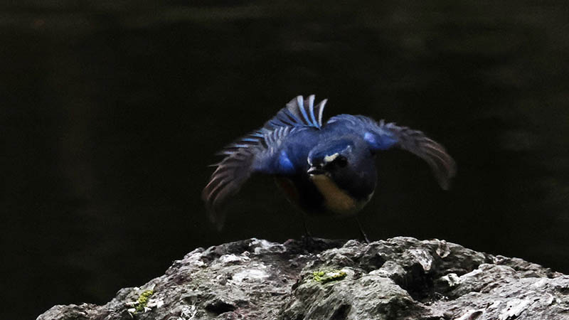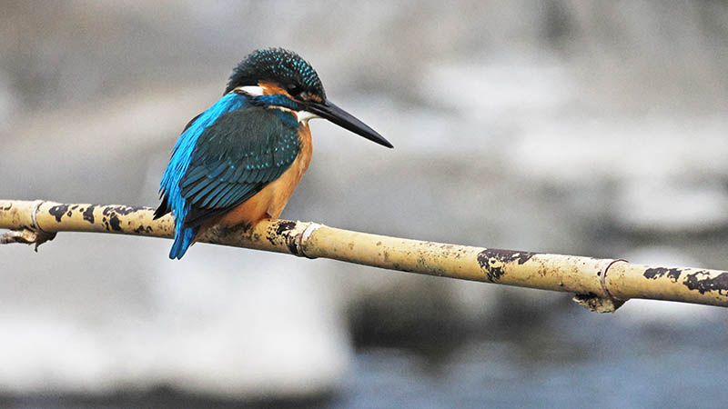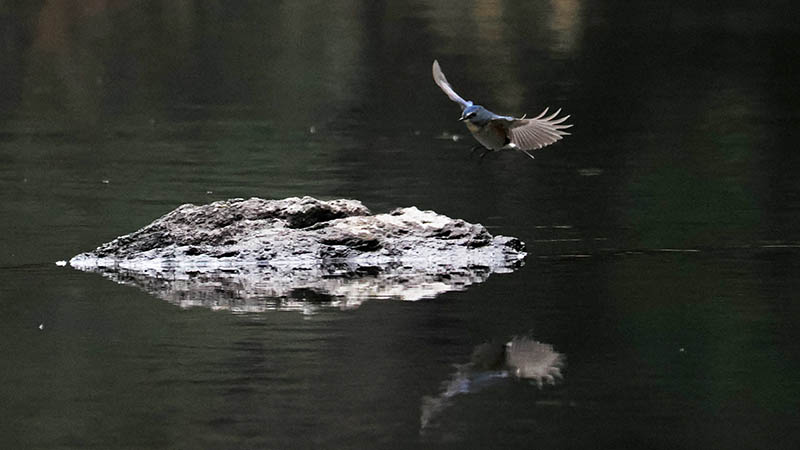 冬のルリビタキは低地(七瀬公園近く)から高山(鶴見岳頂上付近)まで幅広く生息していますが、川の石に止まるルリビタキは結構レアーです。