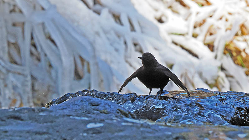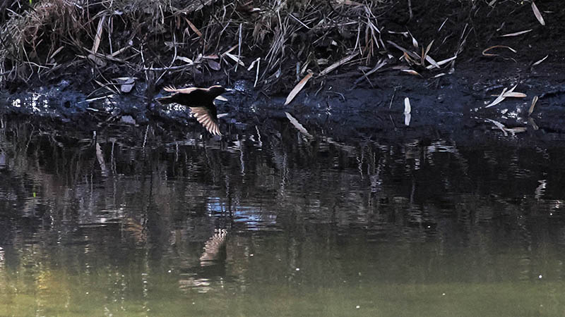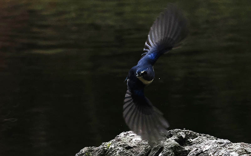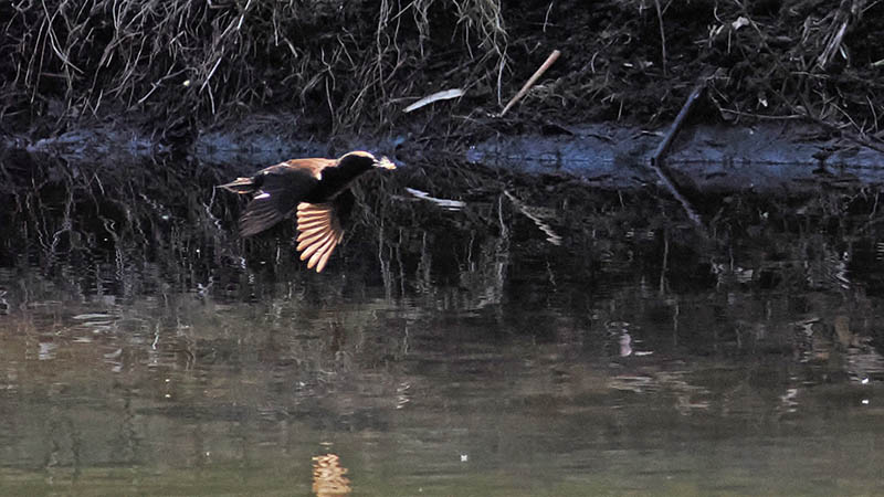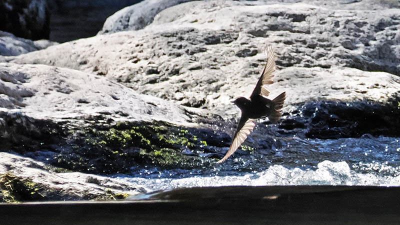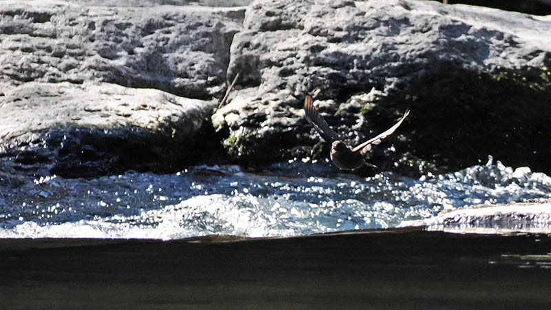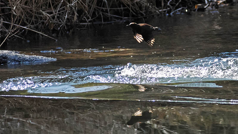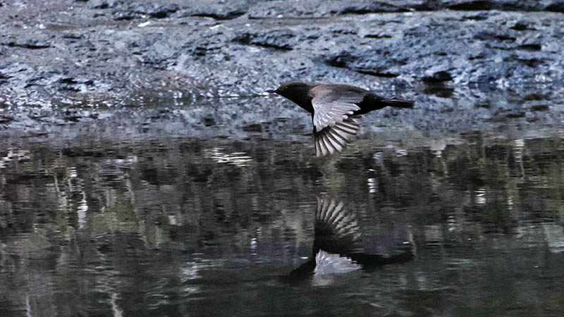 一週間ほど前、いつもの河原で休んでいるとカワガラスが横切る。
