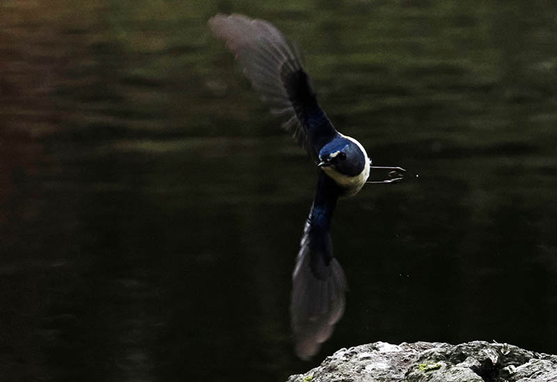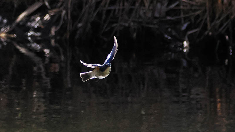 フライングキャッチで羽虫を捕食する小鳥達は、キセキレイ・セグロセキレイ・ハクセキレイ・ジョウビタキ・ルリビタキ・エナガ・キクイタダキ・メジロ・ウグイス・モズなどで、9時過ぎから羽化した羽虫が飛ぶと賑やかになる。