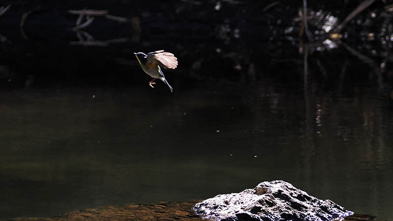 山間部の川であることと、水生昆虫の羽化が始まって小さな羽虫が川面で舞うことから、それを狙って数多くの小鳥達がフライングキャッチをしている。
