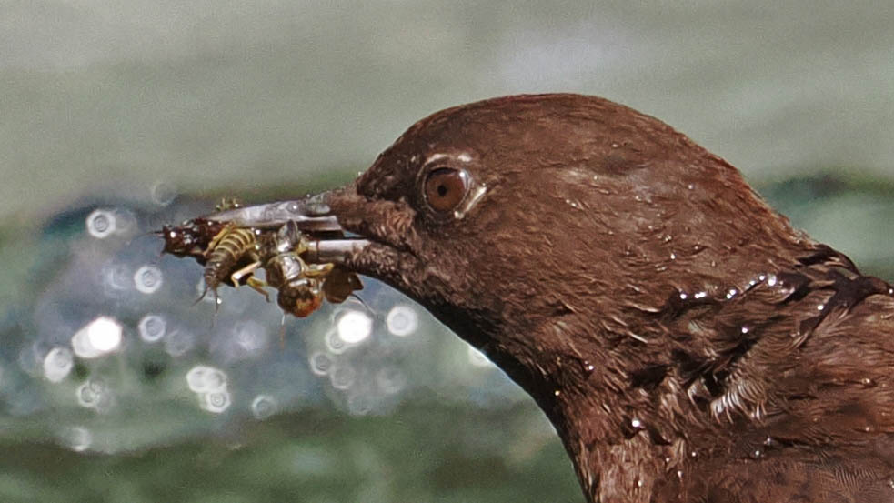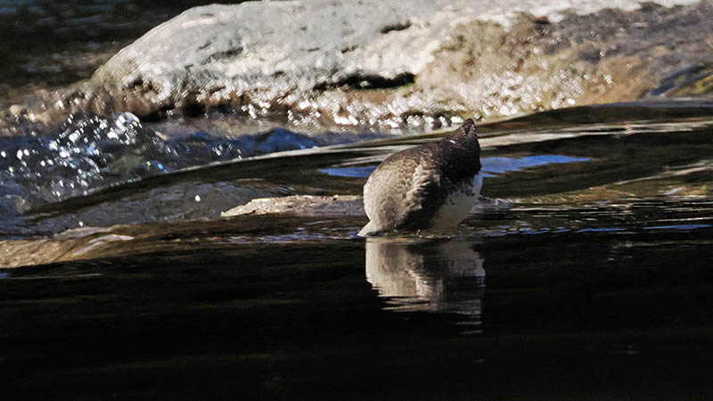 何度かシャッターを押すと、確かにエサを咥えて下流へ行っている。