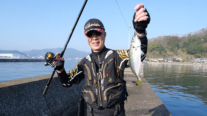 その常連の方は「釣っちゃ王」でも片手に入るほど上手な人で宮崎の方、今年になって10回目の釣行を数えるとか。その中でも今日は最悪の釣果だったそうで、マダイ2匹とシマアジ1匹の貧果でした。
