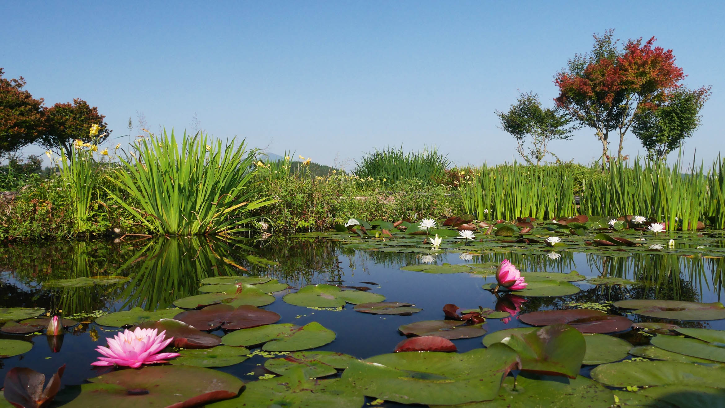 水中の石は苔の付き方が例年より良い感じ、秋に期待しています。