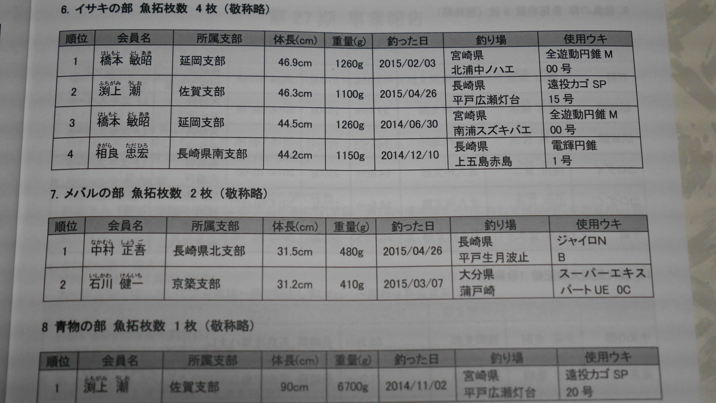 イサキも型が良いですね。橋本さんや渕上さんはダブル入賞