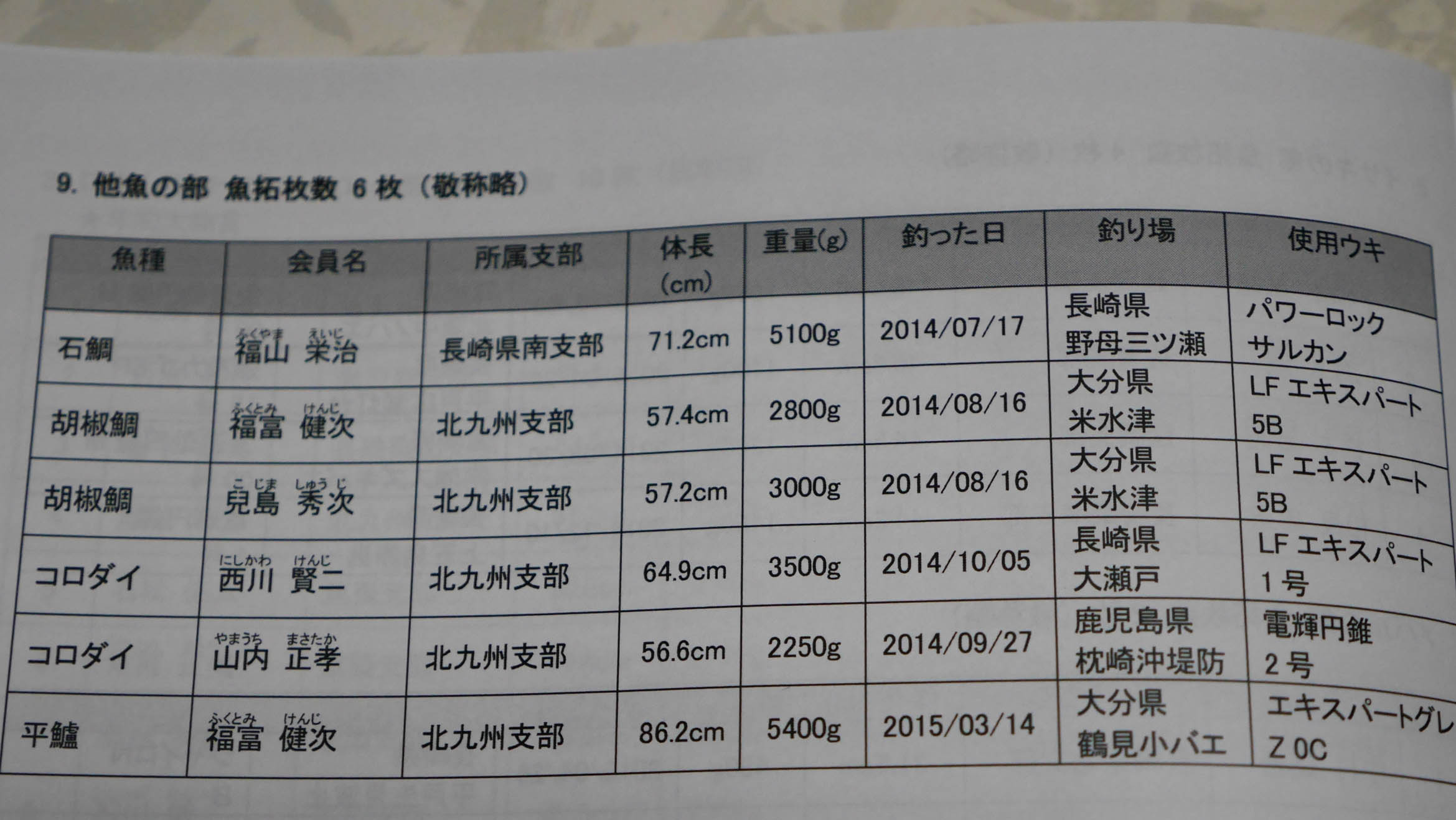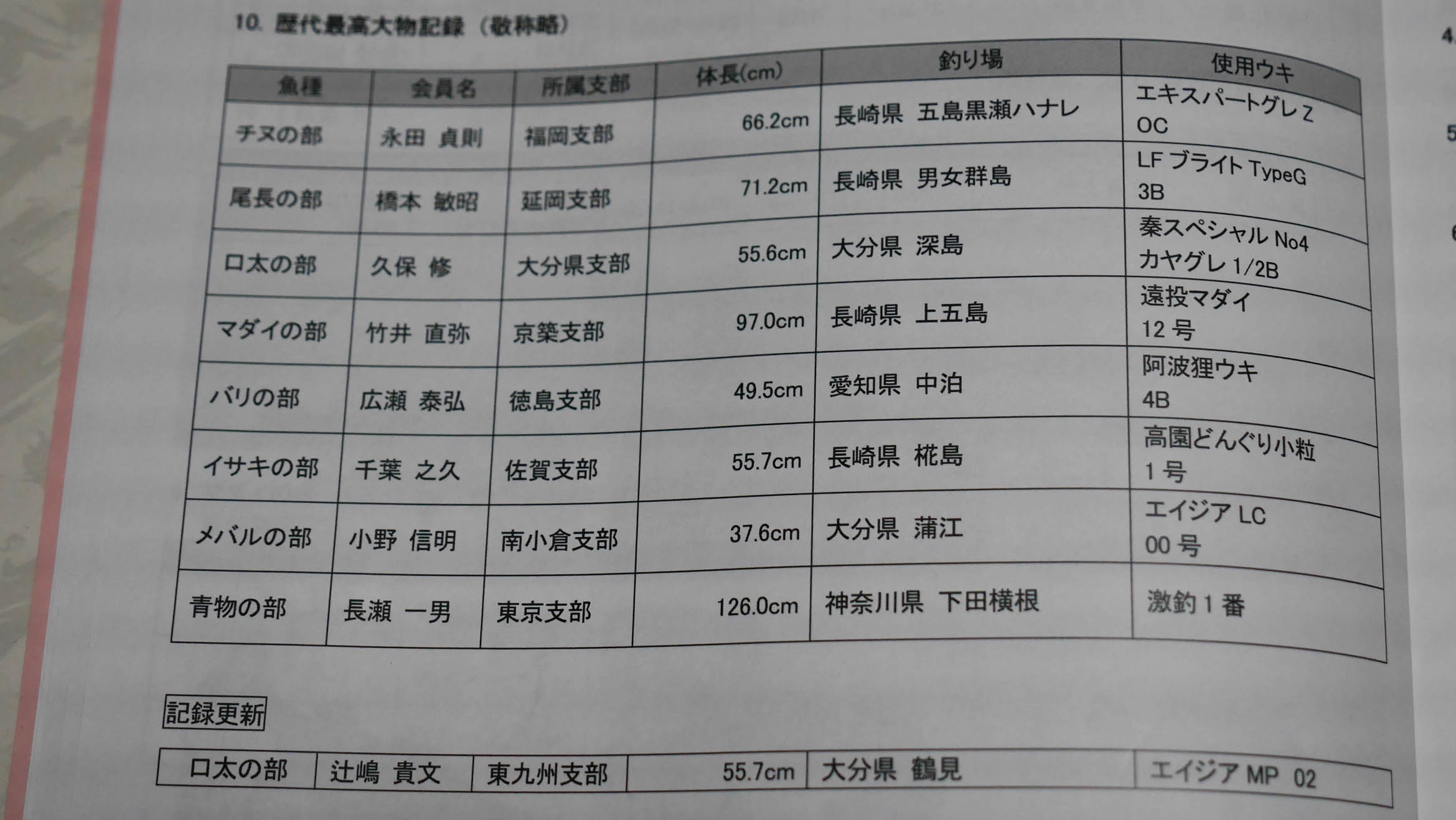 歴代の大物記録の中で、グレの記録を辻島君が塗り替えました