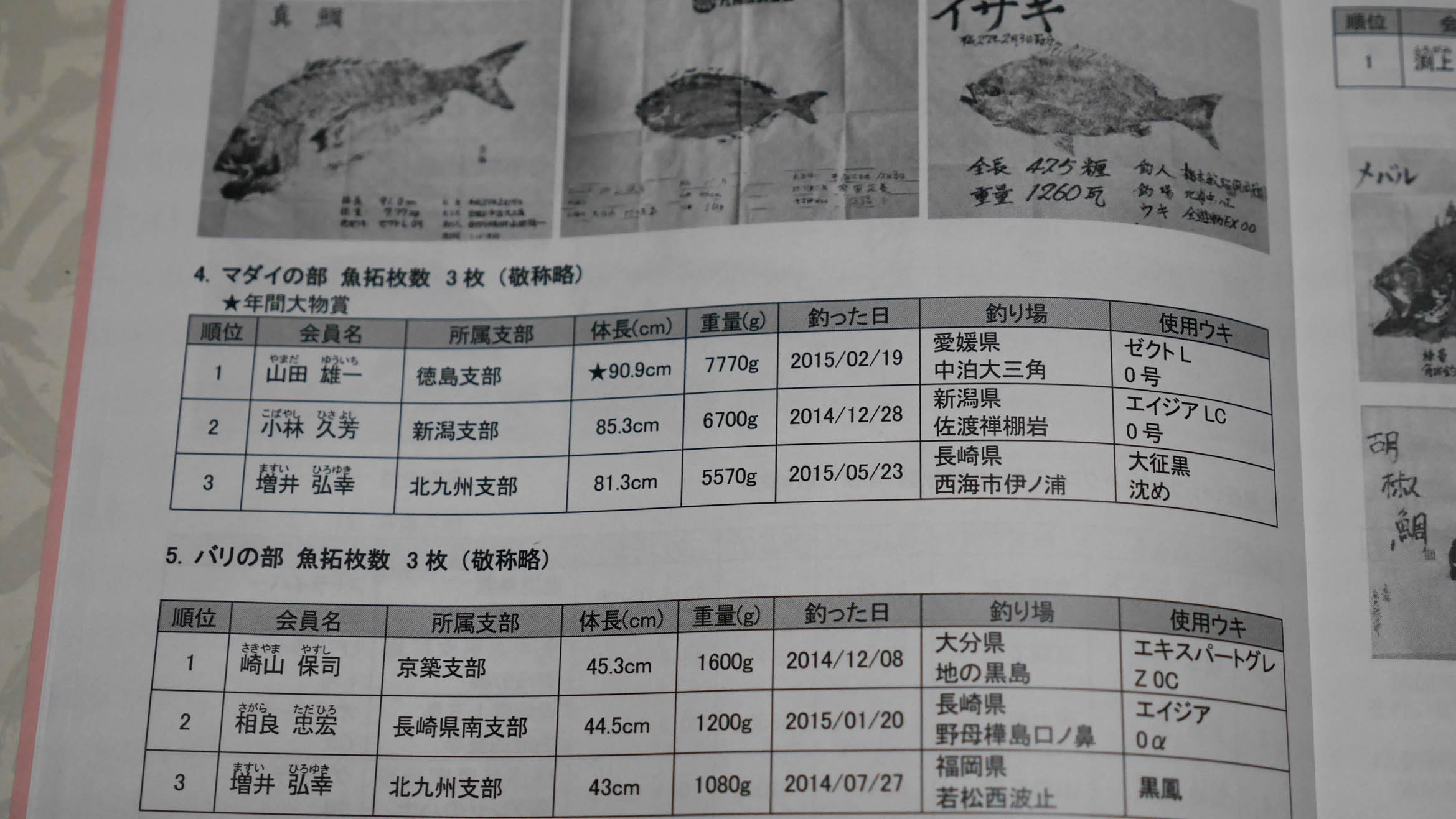 マダイは年間賞と特別大物賞でこちらにも(株)釣研から特別賞が・・