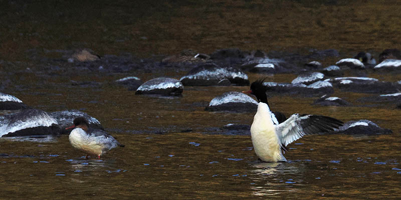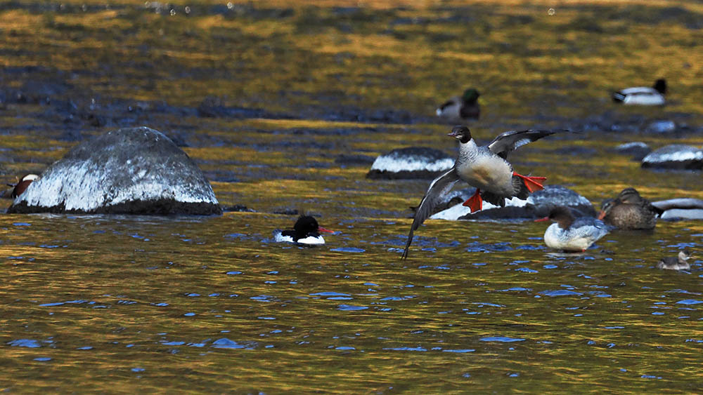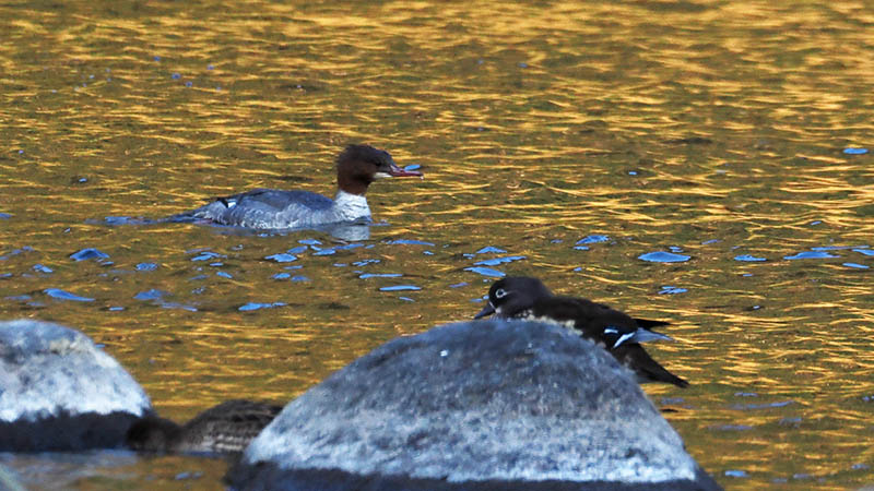 サプライズとしては、未だ居た①コウライアイサと②トモエガモ