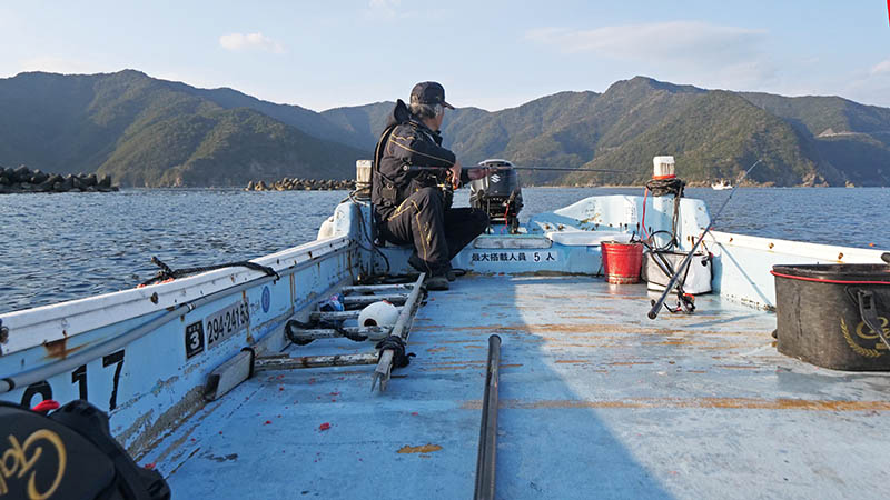 残念ながらマダイの仔・イラ・カワハギなどでクロは出ず、神出君のお父さんたちが5人で釣っている“沖の観音”へと瀬替わりです。