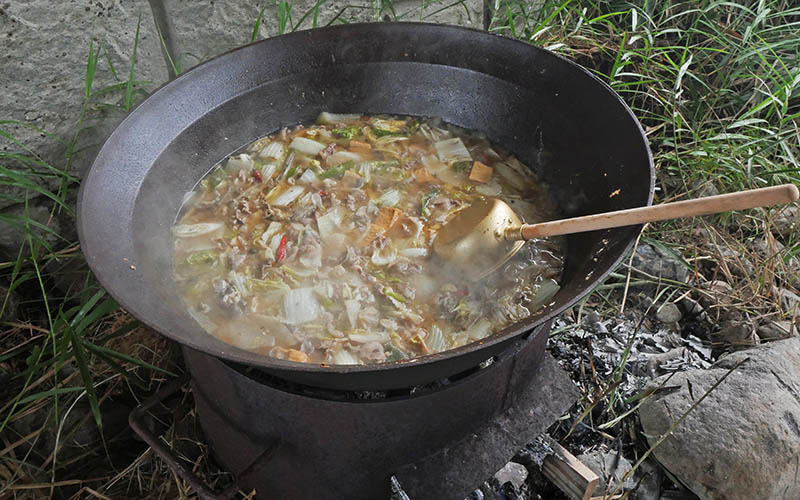 今回は猟師の憲ちゃん自ら猪鍋を・・