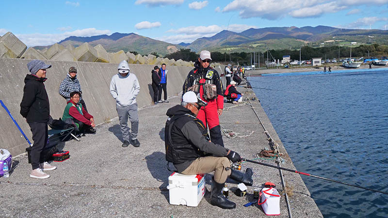 私達の釣りは黄金(こがね)漁港の風裏になっている、船溜りをメインに竿を振りましたがボウズ。他の釣り場も良い釣果には恵まれず、私たちが竿を出した場所で早朝に参加者が釣った1匹が、大会唯一の釣果で幕を閉じました。