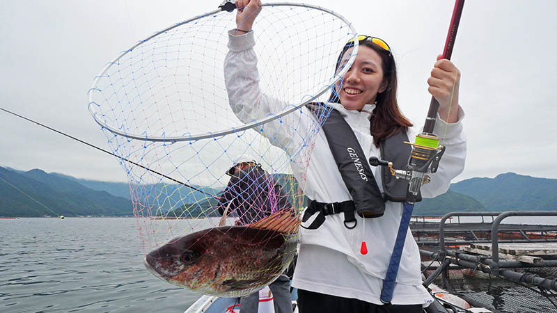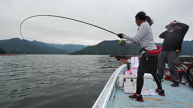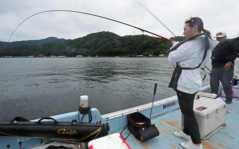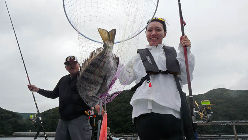 2名の女性の内一人は磯釣り経験者で、一人は初めての大物釣り。