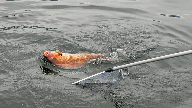 最後にはいつもの生簀に戻りましたが、雨足が強くなって納竿です。