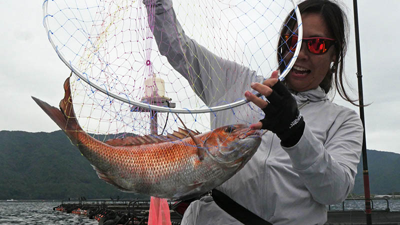 これは3㎏位のマダイ、これで釣りガール誕生です