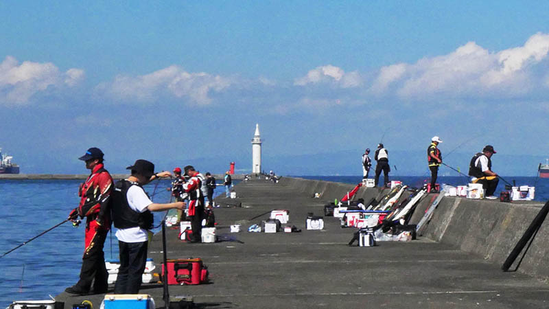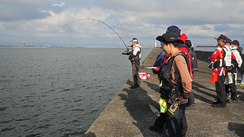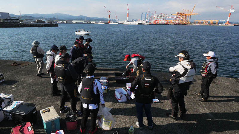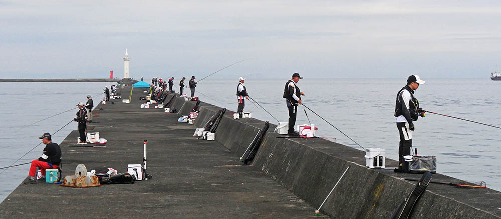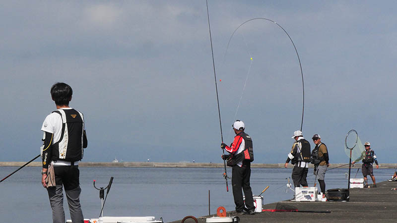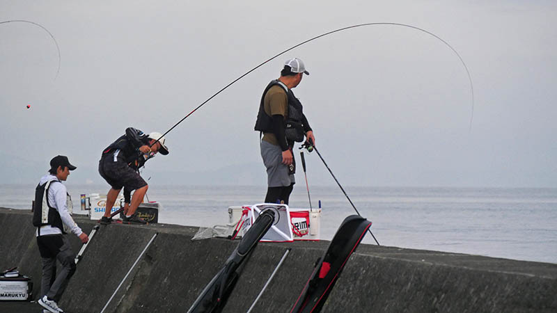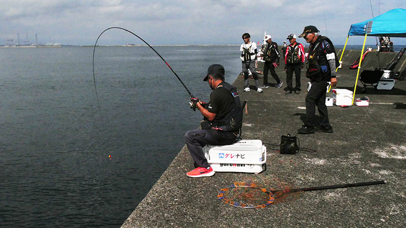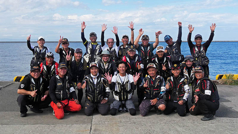 レジェンド釣り大会では、全員が縦一文字で釣りを行った。