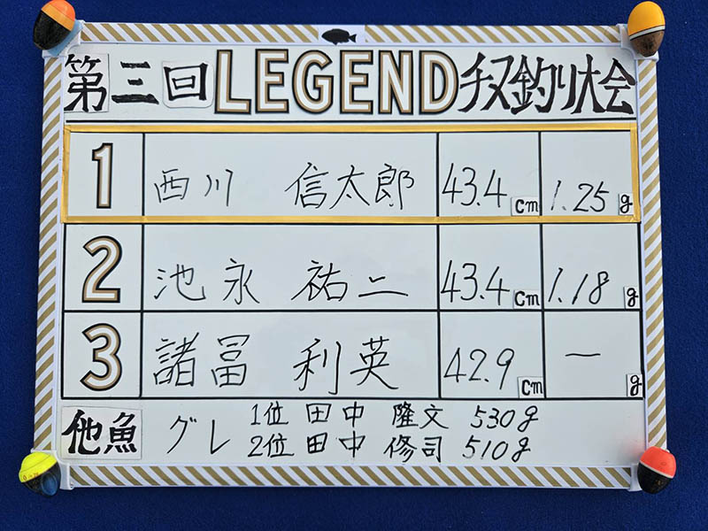 第3回レジェンドチヌ釣り大会は10月6日に開催。