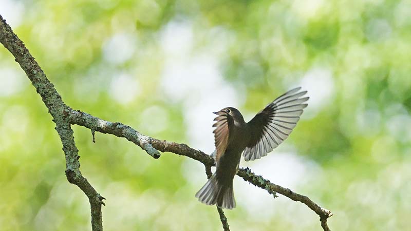 更に県民の森を流すと、やはり昨日は居なかった場所にサメビタキが1羽。