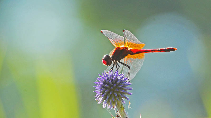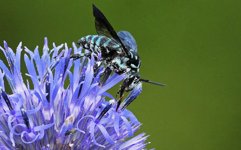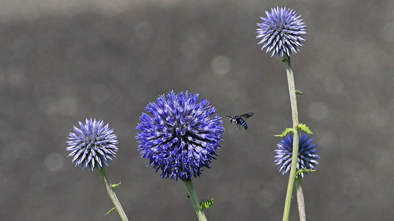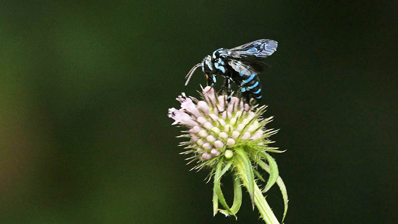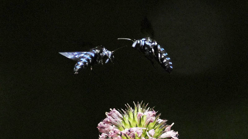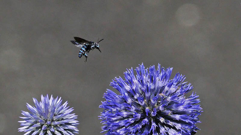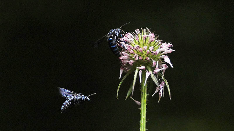 8月18日から、パークライン沿いのナベナの花に1匹のブルービー。