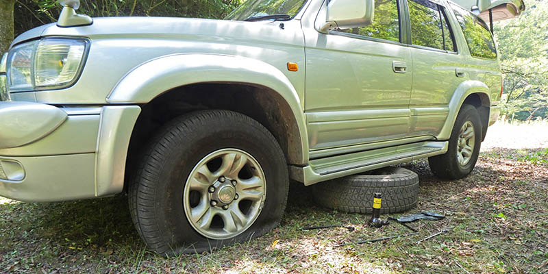 約5万キロ走ってこの車の初のパンクは、サイドが切れており修理不能。