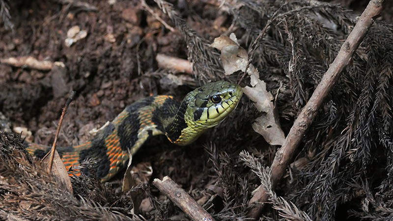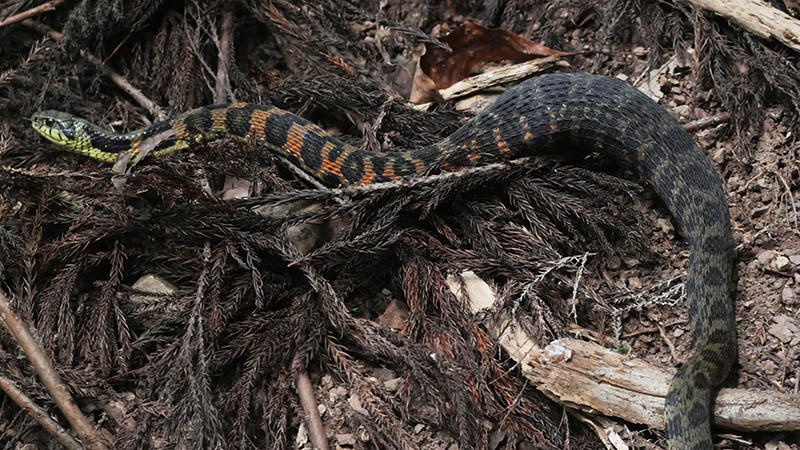アオダイショウは小鳥の巣や小鳥も襲いますが、ヤマカガシはカエルなどの両生類を好んで捕食す蛇です。