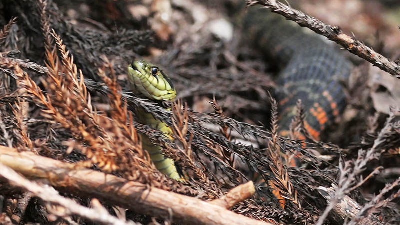 自然を知らない人たちは、毒性の強さからヤマカガシを危険視していますが、私は違います。臆病なヤマカガシは人が近づくと真っ先に逃げます。追っかけて手で摑まえるのも難しいので、手を出さずに普通の生活なら危険はない。