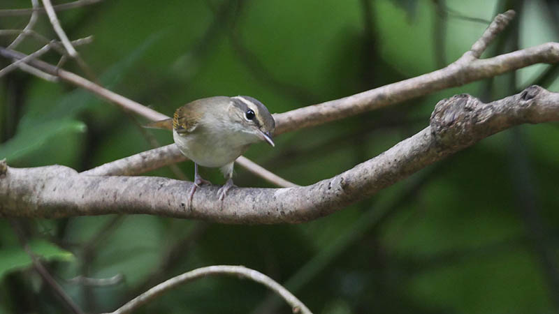 エゾムシクイは本州以北で繁殖する夏鳥ですが、九州は通過だけの旅鳥。
