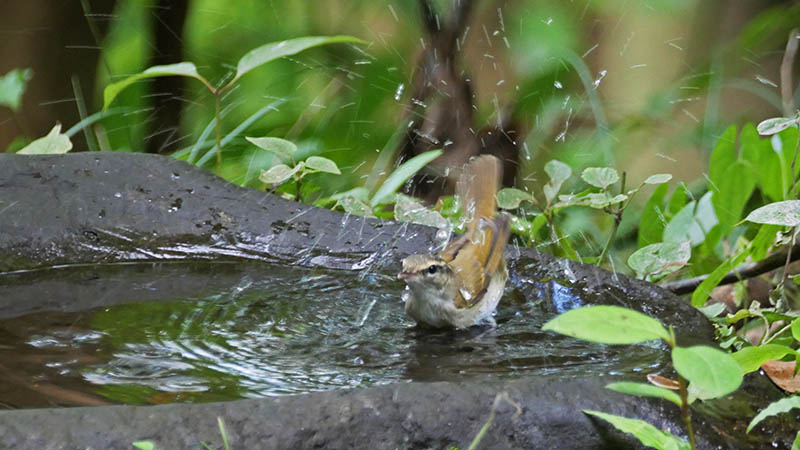 再び舞い戻ったエゾムシクイが水浴びをしてくれて去って行った。