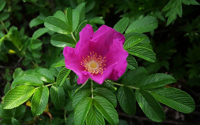 茂辺地の駐車場にハマナスが咲いていた