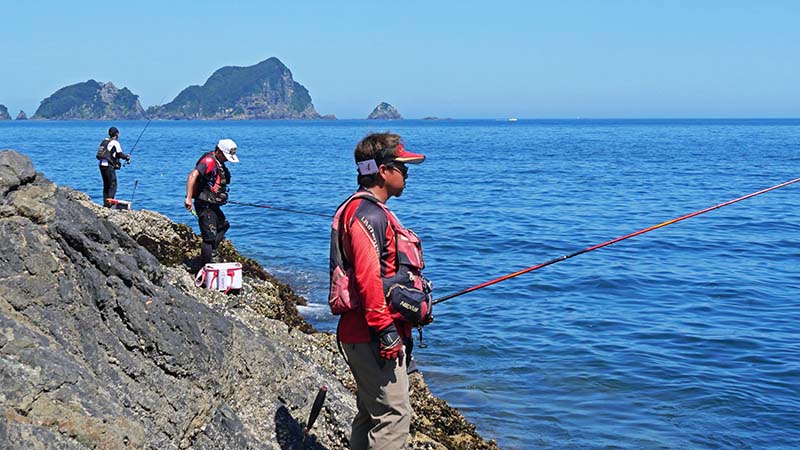 6月の開催予定が荒天で延期となった本日、米水津の渡船組合の協力の下、無事に開催する事が出来ました。何でも静岡では40度という猛暑の一日、米水津の磯も朝は霧に包まれていましたが、晴れ上がると超暑い一日となりました。