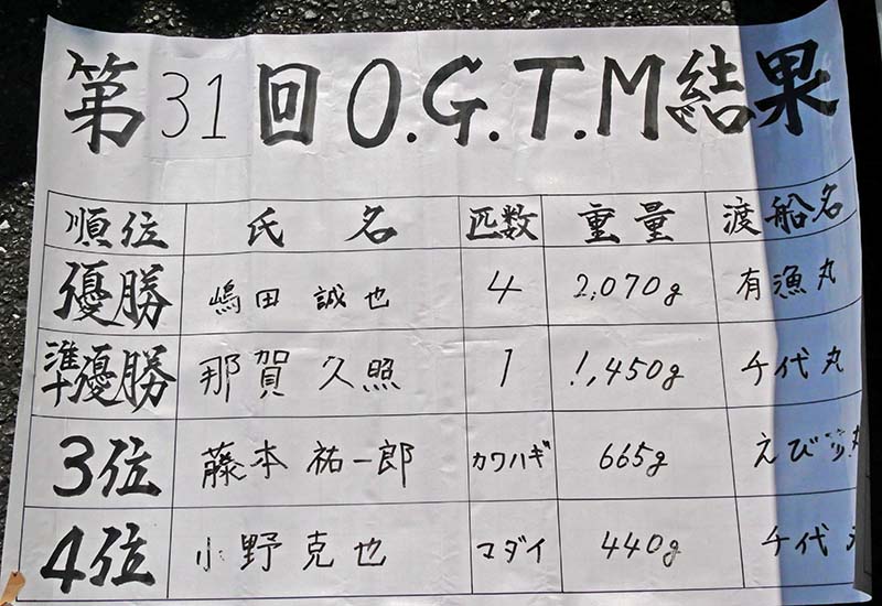 25㎝以上のクロ5匹の重量審査で競技を進めるOGTM