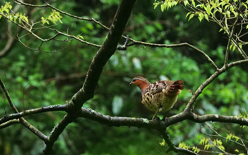 数日前のコジュケイ、チョットコイと鳴く時は樹上が多い