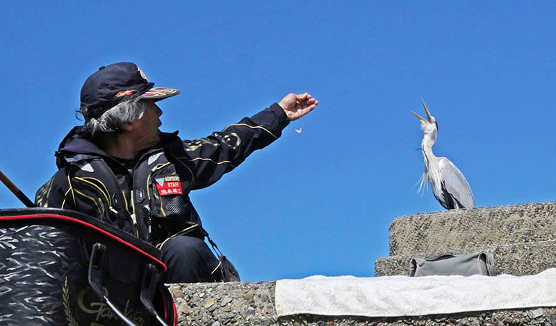釣りをしている時、近くの木の枝に止まって監視するのは彼らの習性。