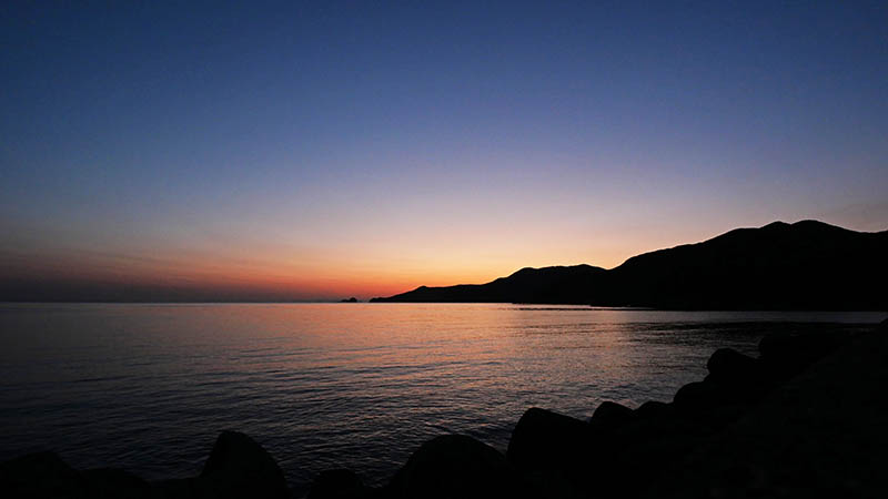 出港地へ向かう道路際から未明のグラデーション