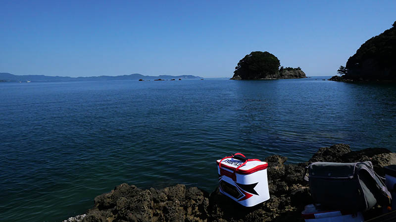 次の磯は“丹賀の赤鼻”私たちが“赤岩”と呼んでいる、足場の広い場所から宇土島方面に回った、急な崖の少ししか無い足場の磯。下げ潮が殆ど動かない中、遠投と駆け上がりの先を交互に狙いましたが、チヌの反応は有りません。