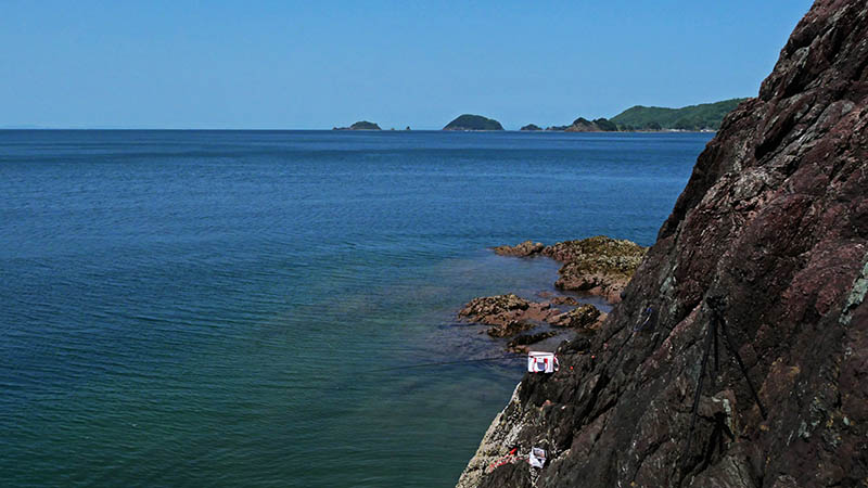 彼らが漁に出かけた時に、崖を上って10m先から望遠レンズでパシャリ。