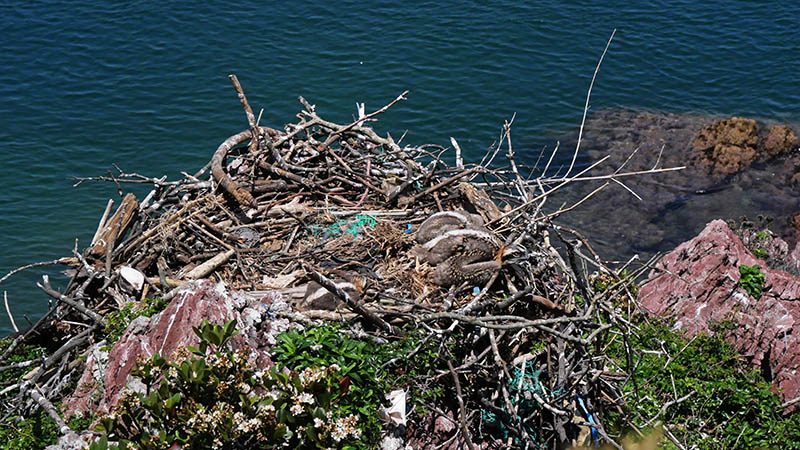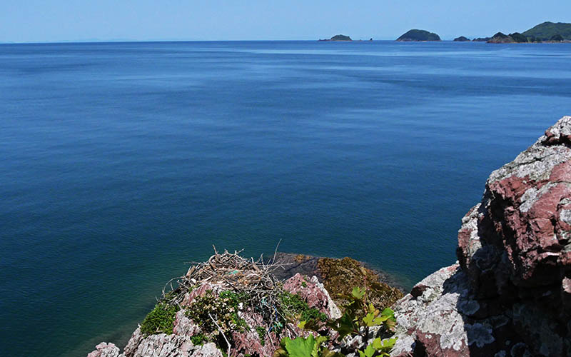 青い海をバックにミサゴの巣