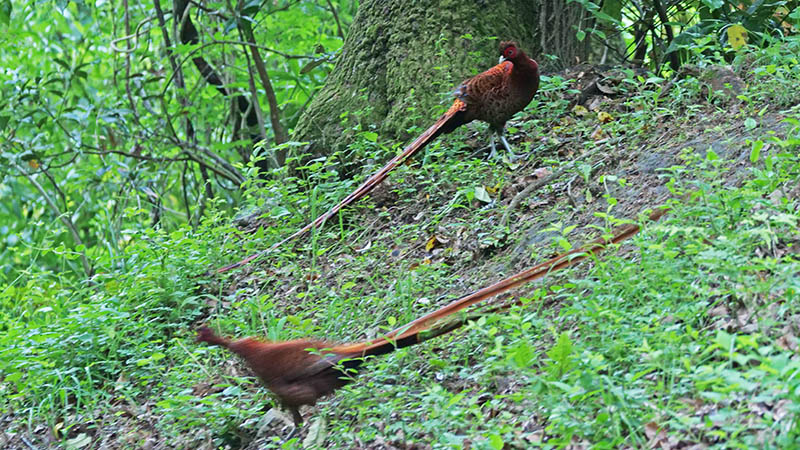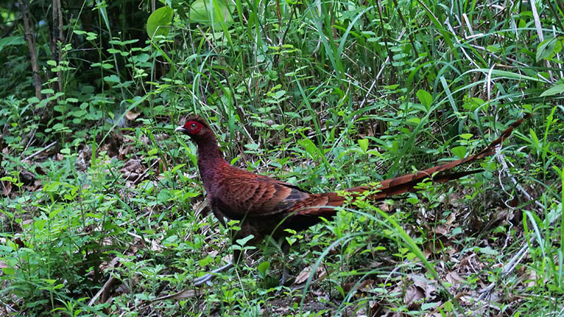 シジュウカラ・イカル・トラツグミ・アオバト・ヒヨドリ・オオアカゲラ・ガビチョウ・ウグイス・カワラヒワ・コジュケイ・コゲラ・エナガ・キジバト・オオルリ・ヤマガラ・カケス・ソウシチョウ・メジロ・ハシブトガラス・コガラ・ミソサザイ・ジュウイチ・アカショウビン・コサメビタキ・ホトトギス・ヨタカ・クロツグミなど27種。