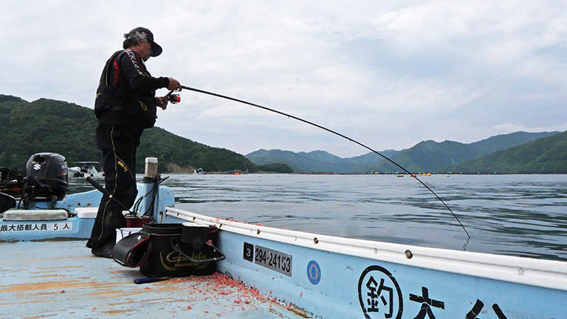 湾内の生簀は2投目で大型マダイが釣れたので、後は温存して沖へ移動です。