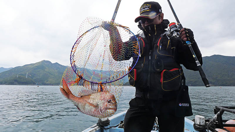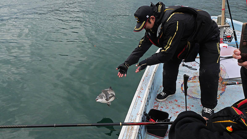 一投目から小型マダイ、馬さんも蔡さんも小型に悩まされる。
