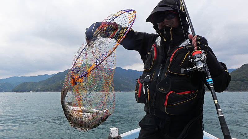 再度湾中央の骨組み生簀に挑戦するも、残念ながら50㎝級まで。