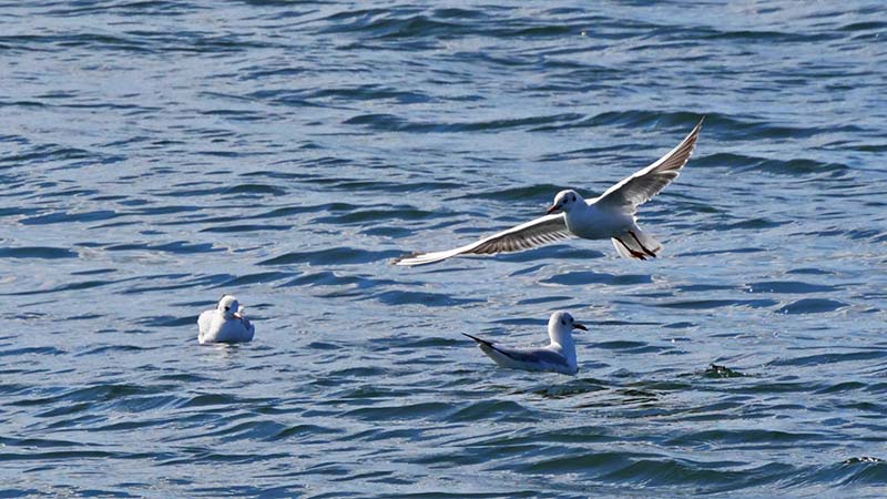 ユリカモメが浮いたオキアミに集まります