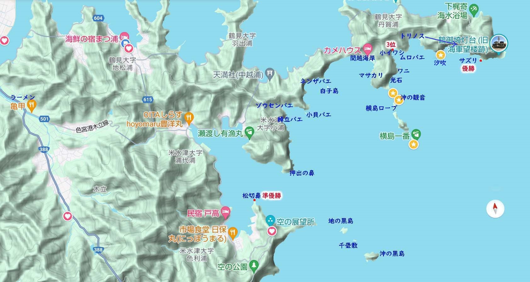 大雑把な米水津の磯の位置関係