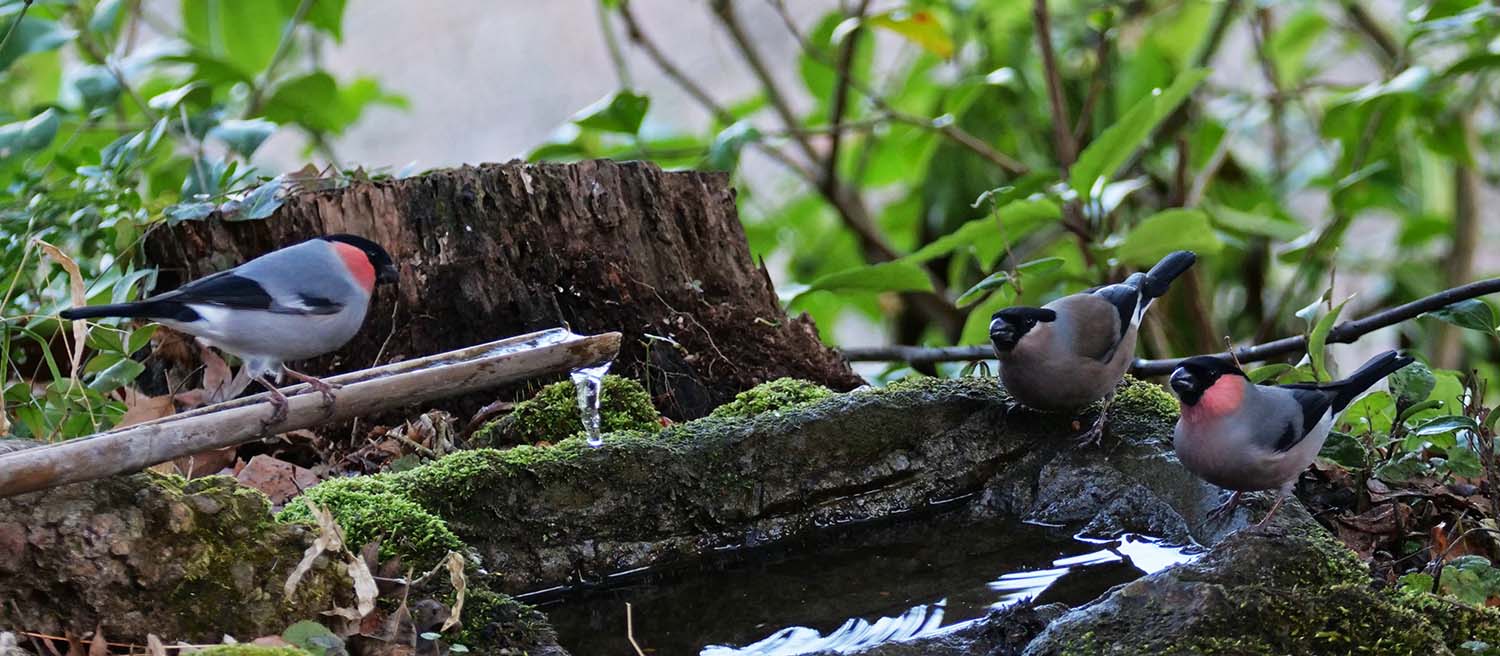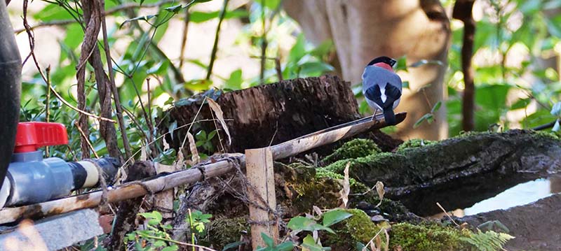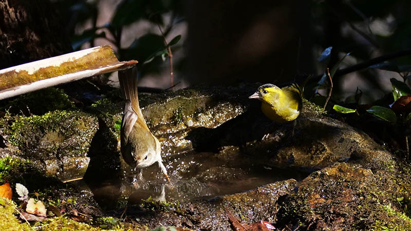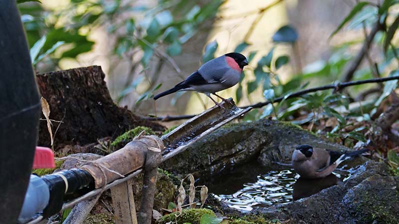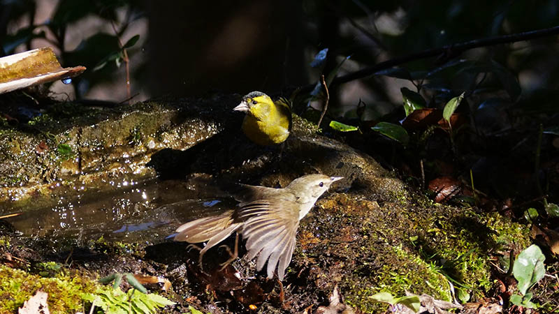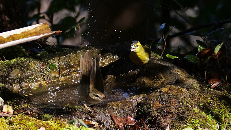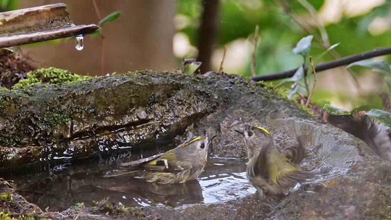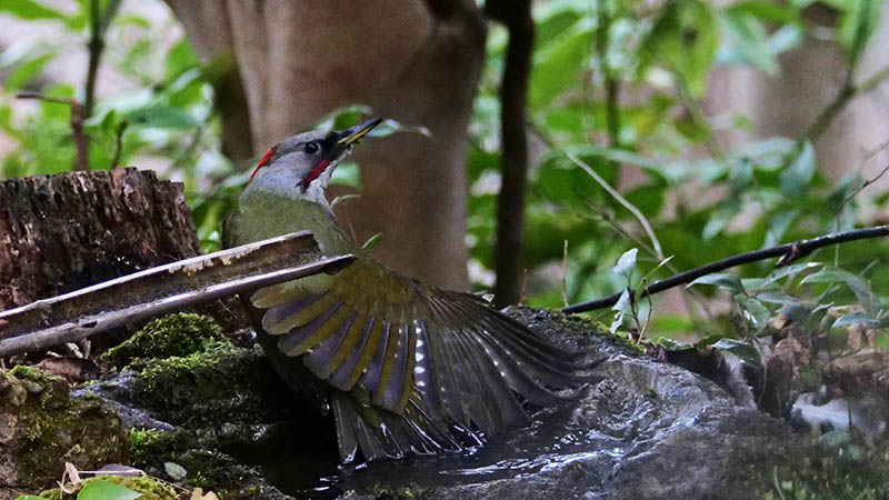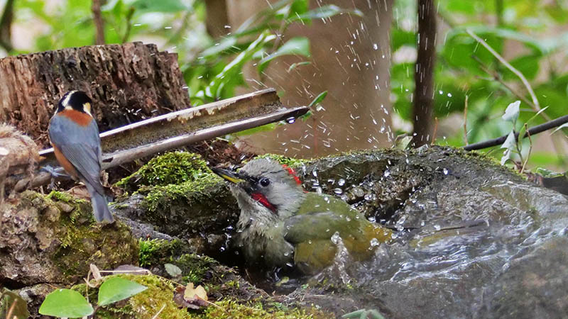 アオゲラの水浴びは水場を造って初めてです