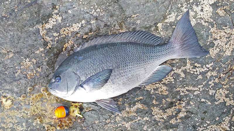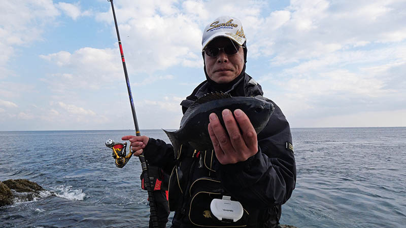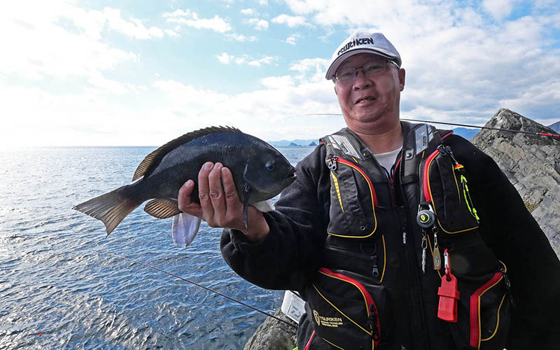 12時の下げ潮スタートで、修ちゃんは一投目は様子を伺うと言って釣り始め、2投目から3連荘でクロを仕留め、早々とデモンストレーションは終わった。