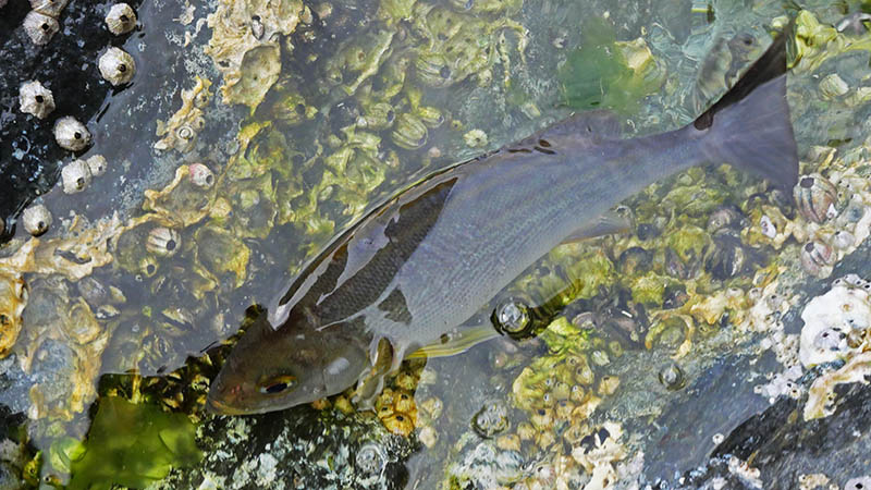 若戎丸の当番瀬である〝サズリ”へ4人。〝ヒガシクボ”へ私を含めて3人で上礁するも、9時過ぎまでの満ち潮は流れず、下げ潮と同じく西流れの潮に手を焼きながら、二人で数枚のクロをゲット。ココで馬さんは竿を出さなかった。