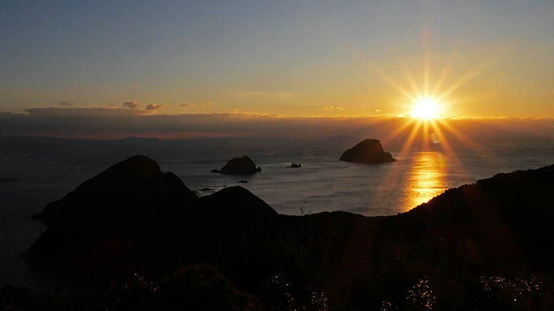 朝は夜明け前から目が覚めて微風快晴。水温は19℃台で早朝の気温が2~3℃。この条件は蜃気楼の一種である、だるま朝陽に合致です。近くの空の公園へ車を走らせたら残念。四国沖の海上まで水平線に雲が掛かっていました。