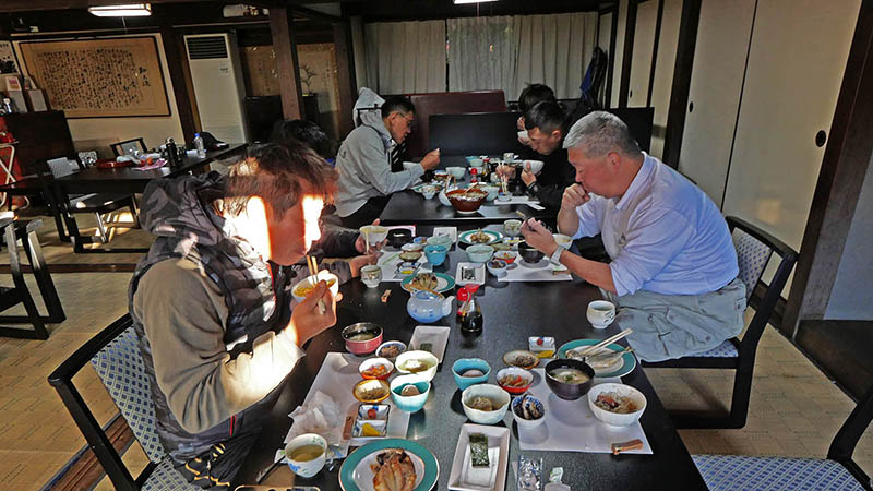 民宿に戻って8時からの食事だけど、皆さんはのんびりしており結局美味しい朝食は8時20分からスタート。朝からご飯2杯と味噌汁3杯が腹に納まった。