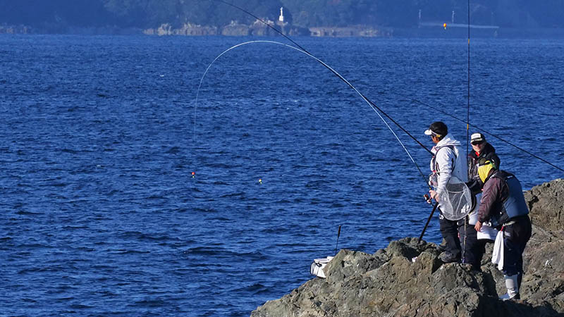 一時間ほどの講師の釣りの後は受講者の釣り。中々釣れない時などは講師の的確なアドバイスで、全員とまでは行かなくても、皆さんの竿は曲がった。