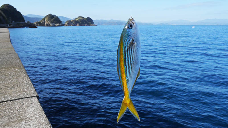 また、マキエを打ち続けていたので、どんな魚が寄っているか釣ってみるとアジゴの連荘です。イカが寄って来ても良いのですが、夜明け前の最高の時合なのに泳がせ仕掛けやイカ仕掛けに反応は出ませんでした。