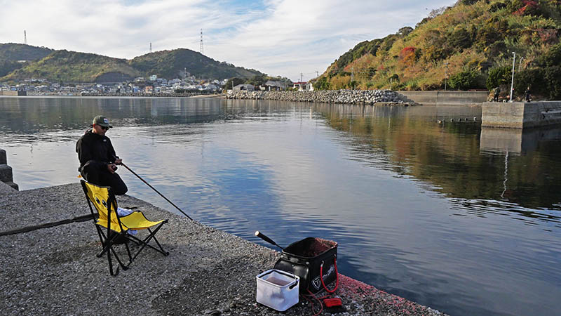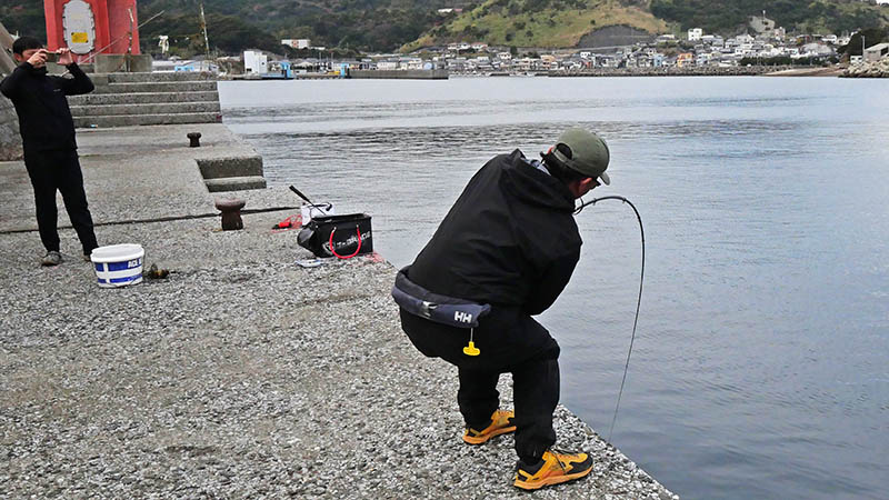 独りで大分入りしたのは、ヒューマンアカデミー福岡校の研究生である江口君。ingで集合しマキエを作って向かった先は佐賀関の幸の浦港。この場所をチョイスしたのは冬型が緩んだ事と、過去に5㎏前後のカンダイが良く釣れた事から。